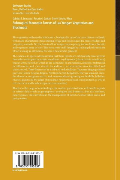 The vegetation addressed in this book is, biologically, one of the most diverse on Earth, with many characteristic taxa offering refuge and food sources for many resident and migratory animals. Yet the forests of Las Yungas remain poorly known from a floristic and vegetation point of view. This book seeks to fill that gap by studying the distribution of forest along an altitudinal but also a bioclimatic gradient.