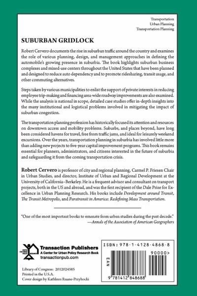 Robert Cervero documents the rise in suburban traffic around the country and examines the role of various planning, design, and management approaches in defining the automobile's growing presence in suburbia. The book highlights suburban business complexes and mixed-use centers throughout the United States that have been planned and designed to reduce auto dependency and to promote ridesharing, transit usage, and other commuting alternatives.Steps taken by various municipalities to enlist the support of private interests in reducing employee trip-making and financing area-wide roadway improvements are also examined. While the analysis is national in scope, detailed case studies offer in-depth insights into the many institutional and logistical problems involved in mitigating the impact of suburban congestion.The transportation planning profession has historically focused its attention and resources on downtown access and mobility problems. Suburbs, and places beyond, have long been considered havens for travel, free from traffic jams, and ideal for leisurely weekend excursions. Over the years, transportation planning in suburbia has involved little more than adding new projects to five-year capital improvement programs. This book remains essential for planners, administrators, and citizens interested in the future of suburbia and safeguarding it from the coming transportation crisis.