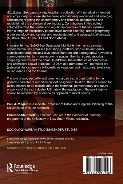 (Sub)Urban Sexscapes presents a mix of geographical, sociological, urban planning and legal viewpoints of the commercial sex industry - sex shops, strip clubs, gentlemen's clubs, brothels and sex workers. The collection showcases contemporary and historical examples of the location, impacts and regulation of commercial sex industry activities in the USA, UK, Australia and Morocco.