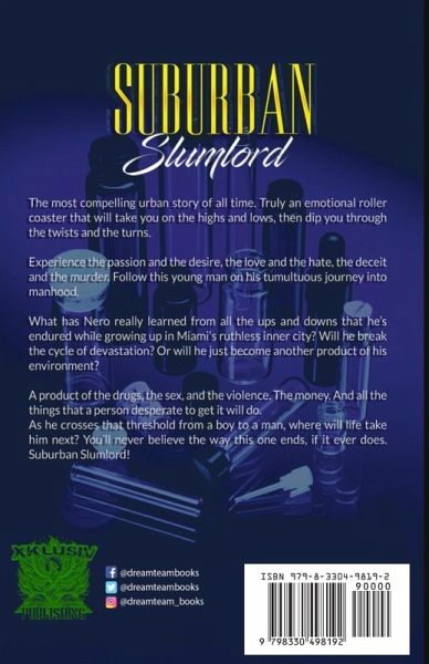 In the heart of Miami, where the sun never sets on the glittering nightlife, Delani "Nero" Brown has clawed his way up from the gritty underworld of drug dealing to become one of the most influential club owners on South Beach. His club, an epitome of luxury, is a magnet for celebrities, socialites, and the elite, all drawn to its opulence and the promise of unforgettable nights. But as Nero basks in his newfound success, a dark secret from his past threatens to unravel everything he's built. Years ago, Nero made a choice that set him on a path of ruthless ambition and relentless drive. Now, as he tries to leave his criminal past behind, someone from those shadowy days resurfaces, determined to expose the truth and destroy his empire. With enemies closing in and allies turning into adversaries, Nero must navigate a treacherous landscape of deception, betrayal, and revenge. The stakes are higher than ever, and the pressure mounts as Nero is forced to confront the demons of his past. As the walls close in, Nero's world becomes a high-stakes game where every move could be his last. Will he be able to protect his empire and secure his future, or will the lifestyle he fought so hard to escape consume him? "Suburban Slumlord" is a gripping tale of ambition, redemption, and the high price of secrets. Perfect for fans of crime thrillers and stories of personal transformation, this novel will keep you on the edge of your seat until the very last page. Dive into a world where the glittering facade of Miami's nightlife hides a dark and dangerous underbelly, and where one man's quest for power and redemption could cost him everything.