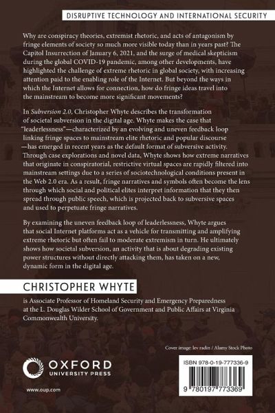 Why are conspiracy theories, extremist rhetoric, and acts of antagonism by fringe elements of society so much more visible today than in years past? In Subversion 2.0, Christopher Whyte makes the case that "leaderlessness"--characterized by an evolving and uneven feedback loop linking fringe spaces to mainstream elite rhetoric and popular discourse--has emerged as the default format of subversive activity in the digital age. By examining the uneven feedback loop of leaderlessness, Whyte argues that social Internet platforms act as a vehicle for transmitting and amplifying extreme rhetoric but often fail to moderate extremism in turn.
