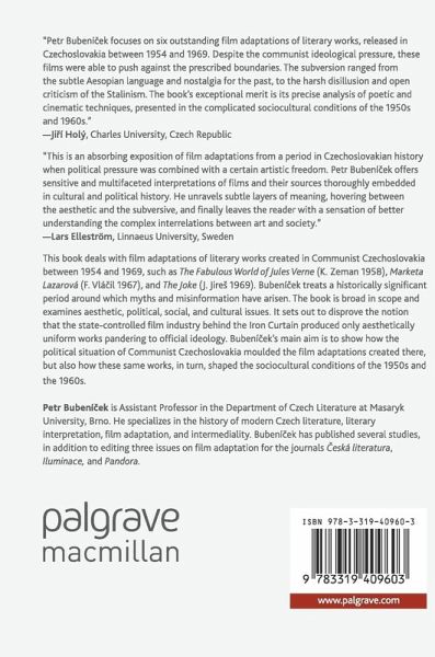 This book deals with film adaptations of literary works created in Communist Czechoslovakia between 1954 and 1969, such as The Fabulous World of Jules Verne (Zeman 1958), Marketa Lazarová (Vlácil 1967), and The Joke (Jires 1969). Bubenícek treats a historically significant period around which myths and misinformation have arisen. The book is broad in scope and examines aesthetic, political, social, and cultural issues. It sets out to disprove the notion that the state-controlled film industry behind the Iron Curtain produced only aesthetically uniform works pandering to official ideology. Bubenícek's main aim is to show how the political situation of Communist Czechoslovakia moulded the film adaptations created there, but also how these same works, in turn, shaped the sociocultural conditions of the 1950s and the 1960s.