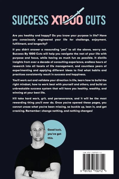 Success By 1000 Cuts is a personal improvement book to help you find your purpose, set goals and establish the foundations for a healthy, challenging, fun, and successful journey through life. It distils over a decade of consulting experience, learning, experimentation, and research to define how to navigate through life, how to build an open and positive mindset, how to build positive and enduring relationships with yourself and others, and how to build a success system for a healthy, fit, fun, and happy life. Covering all aspects of life, it provides a holistic approach to building the foundations for success; covering how to program your brain, how to change your hardware and software, how to build the right diet, fitness regime, and establish the right money management and investment practices as well as covering the softer aspects of how to understand people, culture, build resilience, and a bulletproof mindset. It provides tried and tested systems and frameworks to convert theory into practice ensuring you're always getting the right things done while also continuously improving. Success by 1000 cuts has all of the information you wish you knew when embarking on your adult life.