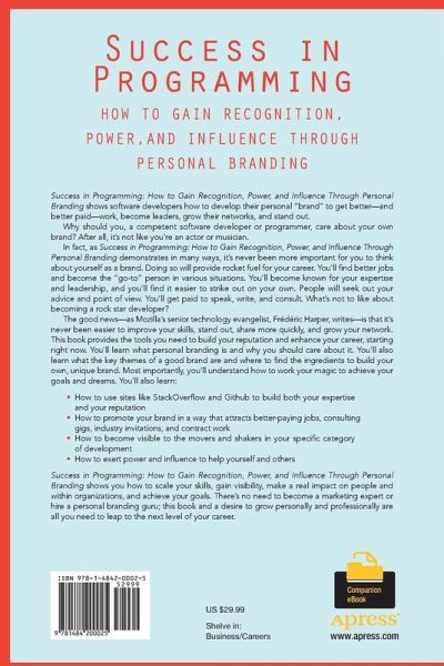 Success in Programming: How to Gain Recognition, Power, and InfluenceThrough Personal Branding shows you how to scale your skills, gain visibility, make a real impact on people and within organizations, and achieve your goals. There s no need to become a marketing expert or hire a personal branding guru; this book and a desire to grow personally and professionally are all you need to leap to the next level of your career.