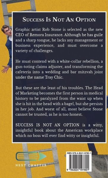 Graphic artist Rob Stone is selected as the new CEO of Remora Insurance. Although he has guile and a sharp tongue, he lacks any management or business experience, and must overcome a variety of challenges. He must contend with a white-collar rebellion, a gun-toting claims adjuster, and transforming the cafeteria into a wedding and bar mitzvah joint under the name Tray Chic. But these are the least of his troubles. The Head of Marketing becomes the first person in medical history to be paralyzed from the waist up when she is hit in the head with a bagel, but she persists in her job. And worst of all, most believe Stone cannot be trusted, as he is too honest. SUCCESS IS NOT AN OPTION is a witty, insightful book about the American workplace which no boss will ever find witty or insightful.