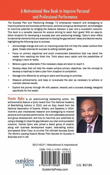 Success Plan and Positioning Strategy 7.0 This book by Vicente Njoku, a self-made success in health care and business, takes the concept of setting and achieving goals...and then takes it up a notch, from page one. By using the blueprint laid out in Success Plan and Positioning Strategy 7.0, you will gain fundamental strategies to evaluate yourself and each milestone on the way to your goal. These strategies will also help you create new goals you couldn't have anticipated-thereby fostering success and happiness in all areas of your life. This book is perfect for: ¿ Students seeking to improve academics ¿ Businesspeople looking to earn promotions ¿ Anyone seeking to improve health, relationships, or talents Njoku nearly dropped out of college because he was working two jobs to make ends meet. But with proper planning and a good positioning strategy, he was able to navigate himself away from a dead-end future and through college, graduate school, medical school, and business school. He taught himself, as his blueprint in this self-help guide will teach you, to find success from the inside out: ¿ Identify your objectives ¿ Know your priorities ¿ Develop a strategic plan and contingency plans ¿ Take action steps to move your dream from inception to completion