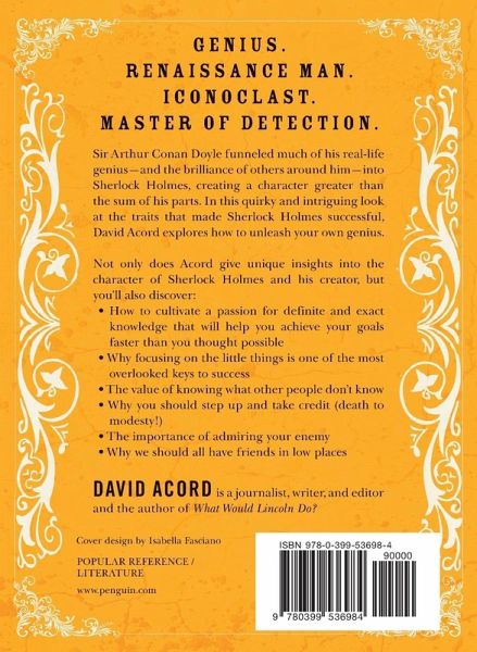 Sir Arthur Conan Doyle funneled much of his real-life genius-and the brilliance of others around him-into Sherlock Holmes, creating a character greater than the sum of his parts. In this quirky and intriguing look at the traits that made Sherlock Holmes successful, David Acord explores how to unleash our own genius. Not only does Acord give unique in sights into the character of Sherlock Holmes and his creator, but you'll also discover: - How to cultivate a passion for definite and exact knowledge that will help you achieve your goals faster than you thought possible - Why focusing on the little things is one of the most overlooked keys to success The value to knowing what other people don't know Why you should step up and take credit (death to modesty!) - The importance of admiring your enemy - Why we should all have friends in low places