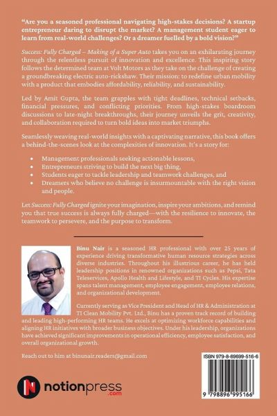"Are you a seasoned professional navigating high-stakes decisions? A startup entrepreneur daring to disrupt the market? A management student eager to learn from real-world challenges? Or a dreamer fuelled by a bold vision?" Success: Fully Charged - Making of a Super Auto takes you on an exhilarating journey through the relentless pursuit of innovation and excellence. This inspiring story follows the determined team at Volt Motors as they take on the challenge of creating a groundbreaking electric auto-rickshaw. Their mission: to redefine urban mobility with a product that embodies affordability, reliability, and sustainability. Led by Amit Gupta, the team grapples with tight deadlines, technical setbacks, financial pressures, and conflicting priorities. From high-stakes boardroom discussions to late-night breakthroughs, their journey unveils the grit, creativity, and collaboration required to turn bold ideas into market triumphs. Seamlessly weaving real-world insights with a captivating narrative, this book offers a behind-the-scenes look at the complexities of innovation. It's a story for: Management professionals seeking actionable lessons, Entrepreneurs striving to build the next big thing, Students eager to tackle leadership and teamwork challenges, and Dreamers who believe no challenge is insurmountable with the right vision and people. Let Success: Fully Charged ignite your imagination, inspire your ambitions, and remind you that true success is always fully charged-with the resilience to innovate, the teamwork to persevere, and the purpose to transform.
