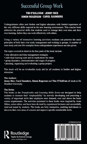 This concise guide covers all the practical skills that students need to work effectively in a group in higher and further education. Using a variety of interactive teaming activities, students can practice the main principles. A number of case-study and real-life examples are also included.