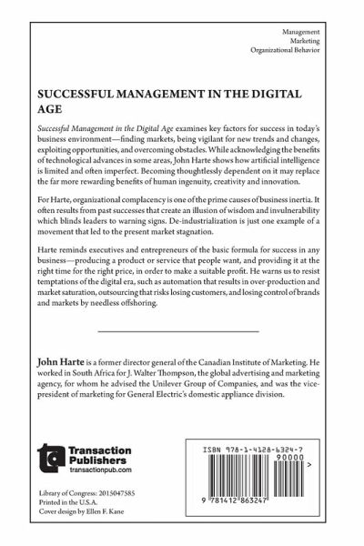 Successful Management in the Digital Age examines key factors for success in today's business environment-finding markets, being vigilant for new trends and changes, exploiting opportunities, and overcoming obstacles. While acknowledging the benefits of technological advances in some areas, John Harte shows how artificial intelligence is limited and often imperfect. Becoming thoughtlessly dependent on it may replace the far more rewarding benefits of human ingenuity, creativity and innovation. For Harte, organizational complacency is one of the prime causes of business inertia. It often results from past successes that create an illusion of wisdom and invulnerability which blinds leaders to warning signs. De-industrialization is just one example of a movement that led to the present market stagnation. Harte reminds executives and entrepreneurs of the basic formula for success in any business-producing a product or service that people want, and providing it at the right time for the right price, in order to make a suitable profit. He warns us to resist temptations of the digital era, such as automation that results in over-production and market saturation, outsourcing that risks losing customers, and losing control of brands and markets by needless offshoring.