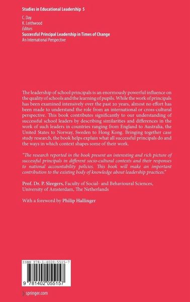 "The research reported in the book presents an interesting and rich picture of successful principals in different socio-cultural contexts and their reponses to national accountability policies. This book will make an important contribution to the existing body of knowledge about leadership practices." Prof.dr. P. Sleegers, Faculty of Social- and Behavioural Sciences, University of Amsterdam, The Netherlands