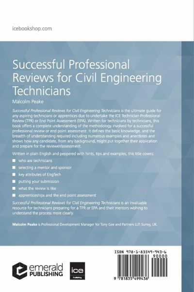 Successful Professional Reviews for Civil Engineering Technicians is the essential guide for aspiring civil engineering technicians preparing to undertake the ICE Technician (EngTech) Professional Review. It provides a complete overview of the methodology involved for a successful professional review or end point assessment.