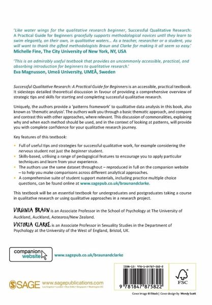 'Like water wings for the qualitative research beginner, Successful Qualitative Research: A Practical Guide for Beginners gracefully supports methodological novices until they learn to swim elegantly, on their own, in qualitative waters... As a teacher, researcher or a student, you will want to thank the gifted methodologists Braun and Clarke for making it all seem so easy'