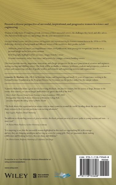 Successful Women Ceramic and Glass Scientists and Engineers: 100 Inspirational Profiles features women born in the 1920's to 1970's. Reflecting a diversity of backgrounds and different sectors of the workforce, their profiles include:
