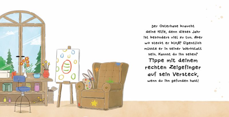 Hier können Kinder ab 2 Jahren selbst aktiv werden: Sie dürfen das Buch auf den Kopf drehen, schütteln, bepusten oder gackern wie ein Huhn, je nachdem, was die kleine Geschichte verlangt. Ein Buch voller Oster-Überraschungen für jede Menge Spiel, Spaß und Spannung.