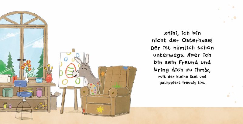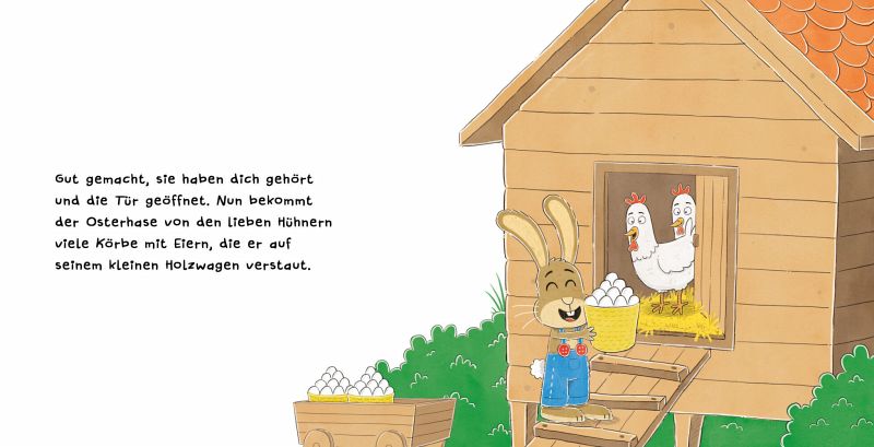 Der Osterhase hat in diesem Jahr furchtbar viel zu tun. Wo steckt er nur? Er kann ein bisschen Hilfe sehr gut gebrauchen. Denn gerade läuft alles schief. Die Hühner öffnen ihm nicht die Tür, ihm fehlen Pinsel und Farben und die Ostereier drohen, aus dem Wagen zu fallen. Und das alles kurz vor dem schönen Osterfest!