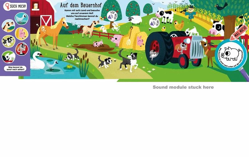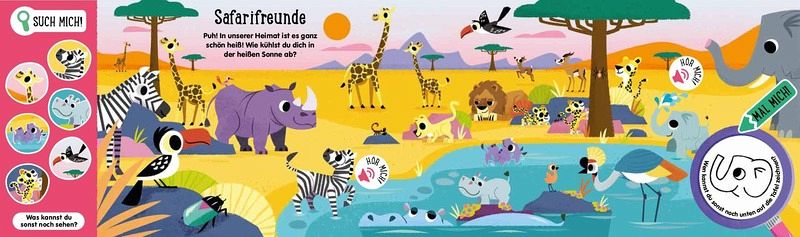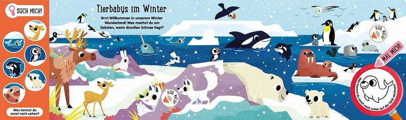 ¿ Für kleine Tier-Fans – suche, höre und male süße Tier-Babys! ¿ Soundbuch mit 12 Sounds, Zeichentafel und Wisch-und-Weg-Stift ¿ Liebevoll illustrierte Wimmelbilder ¿ Stabile Pappeseiten mit runden Ecken für die Allerkleinsten ¿ Trainiert Feinmotorik, Kommunikation und Konzentration 3-in-1: Wimmelbuch mit 12 Suchbildern, Sounds und Maltafel in einem! Suche die Tiere, höre, wie sie klingen und male sie auf die Zeichentafel! Auf jedem Wimmelbild haben sich viele kleine Tier-Babys versteckt, die von dir gefunden werden wollen! Endecke das kleine Krokodil im Dschungel, die kleine Qualle im Meer oder das kleine Zebra in der Savanne! Drücke die Soundbuttons und erforsche, welche Laute die Tiere machen. Mithilfe der Malvorlagen und dem beigelegten Wisch-und-Weg-Stift kannst du die Tier-Babys ganz einfach und immer wieder neu auf deine Zeichentafel malen. Suchaufgaben und kurze Texte regen zusätzlich zum Mitmachen und Erzählen an. Mit diesem Buch wirst du ganz bestimmt zu einer echten Tier-Forscherin oder einem Experten für Tier-Babys! Das multifunktionale Buch ist ideal für zu Hause oder unterwegs und bietet stundenlange Beschäftigung, ohne dabei Zeit am Bildschirm zu verbringen. Ein passendes Geschenk für alle neugierigen Kinder ab 3 Jahren und ideal geeignet für kleine Kinderhände. Das Buch fördert ganz nebenbei Feinmotorik, Kommunikation und Konzentration. Achtung: Nicht geeignet für Kinder unter 3 Jahren. Erstickungsgefahr wegen verschluckbarer Kleinteile.