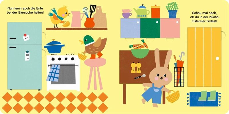 Pappbilderbuch mit stabiler Buchdecke und 22 KlappenLustige Ostereiersuche und jede Menge ÜberraschungenHochwertiges Ostergeschenk mit niedlich-modernen IllustrationenViele Mitmach-Elemente auf jeder Seite