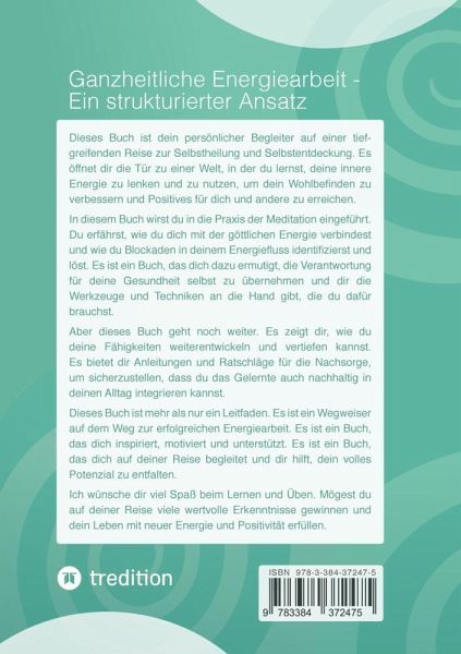 Das Buch behandelt das Thema Energiearbeit und deren Einfluss auf Körper, Geist und Seele. Es erklärt grundlegende Konzepte wie Energiefelder, Chakren und die Macht der Gedanken. Der Inhalt umfasst verschiedene Techniken zur Stärkung mentaler Fähigkeiten, Energieübertragung und heilende Berührungen. Praktische Methoden wie Visualisierung, Fokussierung und energetische Reinigung werden vorgestellt. Das Buch bietet einen ganzheitlichen Ansatz zur Harmonisierung und Heilung, einschließlich Übungen zur Selbstanwendung. Es richtet sich an Menschen, die ihr volles Potenzial entfalten und ein ausgeglicheneres Leben führen möchten.
