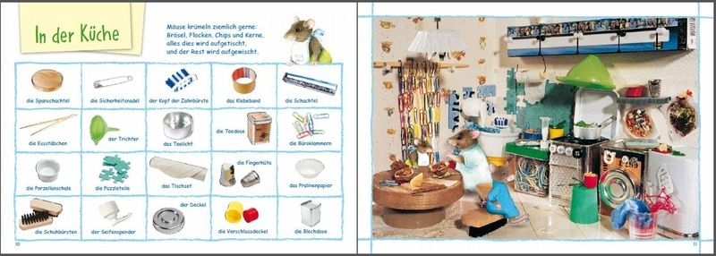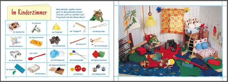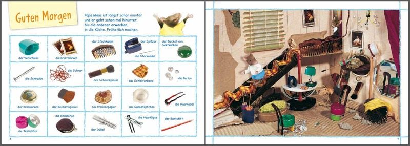 Und wie schön sich Familie Maus eingerichtet hat! Woher Familie Maus ihre Möbel, Lampen Bilder oder Spielsachen hat? Psst, nicht verraten! Papa Maus hat sie in der Nacht aus den Wohnungen der Menschen geholt. Kannst du erkennen, woraus Familie Maus ihren Schreibtisch gebaut hat?