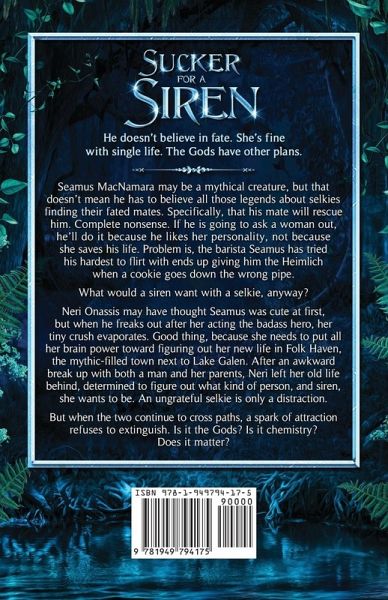 He doesn't believe in fate. She's fine with single life. The gods have other plans. Seamus MacNamara may be a mythical creature, but that doesn't mean he has to believe all those legends about selkies finding their fated mates. Specifically, that his mate will rescue him. Complete nonsense. If he is going to ask a woman out, he'll do it because he likes her personality, not because she saves his life. Problem is, the barista Seamus has tried his hardest to flirt with ends up giving him the Heimlich when a cookie goes down the wrong pipe. What would a siren want with a selkie, anyway? Neri Onassis may have thought Seamus was cute at first, but when he freaks out after her acting the badass hero, her tiny crush evaporates. Good thing, because she needs to put all her brain power toward figuring out her new life in Folk Haven, the mythic-filled town next to Lake Galen. After an awkward break up with both a man and her parents, Neri left her old life behind, determined to figure out what kind of person, and siren, she wants to be. An ungrateful selkie is only a distraction. But in a small town the two continue to cross paths, and Seamus finds himself giving in to the call of the siren's intelligence and humor. After a passionate encounter, the selkie wonders if the gods had the pairing right all along. But Seamus can't rely on fate when Neri refuses to even consider mating the man who ran from her in the first place.