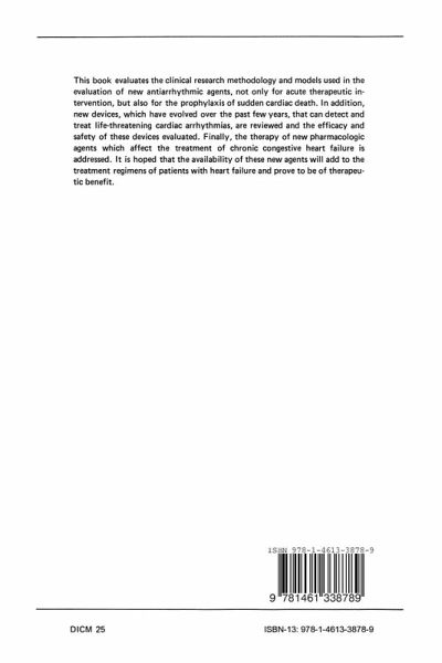 New Antiarrhythmic Agents: Basic Considerations.- Do animal models predict results in man?.- Application of pharmacologic principles in the evaluation of new antiarrhythmic agents.- Characterization of antiarrhythmic drugs.- Panel Discussion: New antiarrhythmic agents: basic considerations.- Efficacy Models For Patients With Chronic Ventricular Arrhythmias.- How should ventricular arrhythmias be classified and which patients should be treated?.- Study design for patients with chronic ventricular ectopy: determination of efficacy and tolerance.- Chronic tolerance to antiarrhythmic therapy How to handle emergency drug requests.- Panel Discussion: Efficacy models for patients with chronic ventricular arrhythmias.- Efficacy Models: Acute Ventricular Arrhythmias.- The value of electrophysiologic testing in predicting long-term efficacy of antiarrhythmic drugs in patients with life-threatening ventricular arrhythmias.- Efficacy models: acute ventricular arrhythmias.- A look to the future: outpatient placebo controlled trials of antiarrhythmic drug efficacy in patients with life-threatening ventricular arrhythmias.- Panel Discussion: Efficacy models: acute ventricular arrhythmias.- Sudden Death: Can it Now be Used as an Endpoint?.- Protocol design for sudden death prevention.- Do beta blockers prevent sudden cardiac death?.- Does non beta-blocking antiarrhythmic therapy prevent sudden cardiac death?.- Current problems in the evaluation and approval of new antiarrhythmic agents.- Panel Discussion: Sudden death: can it now be used as an endpoint?.- New Devices: Pacemakers in the Treatment of Arrhythmias and Prevention of Sudden Cardiac Death.- New devices: pacemakers in the treatment of arrhythmias and prevention of sudden cardiac death.- Transvenous cardioversion to treat tachyarrhythmias.- The role of permanently implanted pacemakers in the therapy of recurrent tachyarrhythmias.- Clinical evaluation of an implantable automatic cardioverter defibrillator.- Evaluation of devices for the prevention of sudden death: study design for safety and efficacy of the devices.- New device approval by the Food and Drug Administration.- Panel Discussion: New devices: pacemakers in the treatment of arrhythmias and prevention of sudden cardiac death.- New Cardiac Inotropic Agents.- Pharmacologic principles in the use of new inotropic agents.- The clinical assessment of A inotropic drugs.- Panel Discussion: New cardiac inotropic agents.- Conclusion: Remarks by Arthur Hull Hayes, Jr., Commissioner of Food and Drugs.- List of Participants.