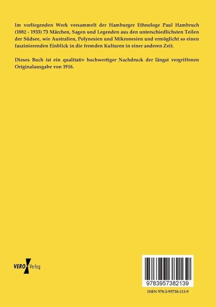 Im vorliegenden Werk versammelt der Hamburger Ethnologe Paul Hambruch (1882 - 1933) 73 Märchen, Sagen und Legenden aus den unterschiedlichsten Teilen der Südsee, wie Australien, Polynesien und Mikronesien und ermöglicht so einen faszinierenden Einblick in die fremden Kulturen in einer anderen Zeit.