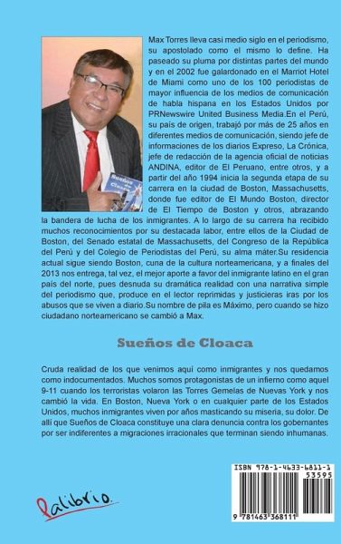 Sueños de Cloaca Sueños de Cloaca es una narración sucinta y real de los avatares por los que pasan los inmigrantes latinos en Estados Unidos y es tal vez la culminación de una primera etapa en la lucha que se embarcó Máx Torres hace algunos años desde su trinchera de periodista a favor de los inmigrantes indocumentados. Su desarrollo se centra principalmente en la ciudad de Boston y la pluma de Torres va dando perfil a sus breves historias en forma cruda, pero amena y humorística que de seguro obtendrá del lector el intrínseco galardón de que Sueños de cloaca será leido de cabo a rabo y de un un solo tirón. Constituye además, una clara denuncia contra los gobernantes de América del Sur y Central, así como contra los de USA, por no generar políticas tendentes a solucionar este tipo de inmigración por otro más humanizado.