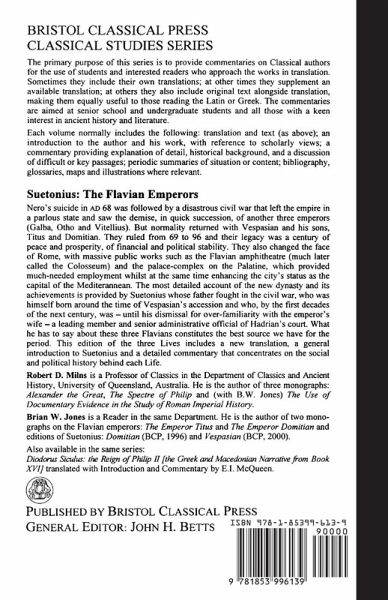 Nero's suicide in AD 68 was followed by a disastrous civil war that left the empire in a parlous state and saw the demise, in quick succession, of another three emperors (Galba, Otho and Vitellius). Normality returned with Vespasian and his sons, Titus and Domitian who ruled from 69 to 96. They changed the face of Rome, with massive public works such as the Flavian amphitheatre (later called the Colosseum) and the palace-complex on the Palatine, which provided much-needed employment whilst at the same time enhancing the city's status as the capital of the Mediterranean. The most detailed account of the new dynasty and its achievements is provided by Suetonius. What he has to say about these three Flavians constitutes the best source we have for the period. This edition of the three "Lives" includes a new translation, a general introduction to Suetonius and a detailed commentary that concentrates on the social and political history behind each life.