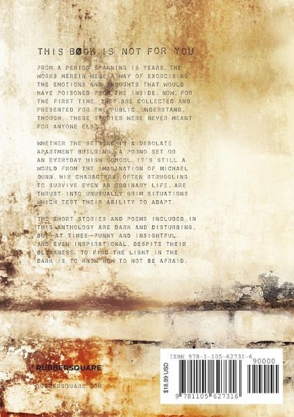 From a period spanning 15 years, the works herein were a way of exorcising the emotions and thoughts that would have poisoned from the inside. Now, they are collected and presented for the public. Understand, though, these stories were never meant for anyone else. Whether the setting is a desolate apartment building, a porno set or an everyday high school, it's still a world from the imagination of Michael Dunn. His characters, often struggling to survive even an ordinary life, are thrust into unusually grim situations which test their ability to adapt. The short stories and poems included in this anthology are dark and disturbing, but-at times-funny and insightful. And even inspirational, despite their bleakness. To find the light in the dark is to know how to not be afraid.