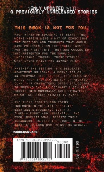 This book is not for you. From a period spanning 15 years, the works herein were a way of exorcising the emotions and thoughts that would have poisoned from the inside. Now, for the fIrst time, they are collected and presented for the public. Understand, though, these stories were never meant for anyone else. Whether the setting is a desolate apartment building, a porno set or an everyday high school, it's still a world from the imagination of Michael Dunn. His characters, often struggling to survive even an ordinary life, are thrust into unusually grim situations which test their ability to adapt. The short stories and poems included in this anthology are dark and disturbing, but - at times - funny and insightful. And even inspirational, despite their bleakness. To fInd the light in the dark is to know how to not be afraid.