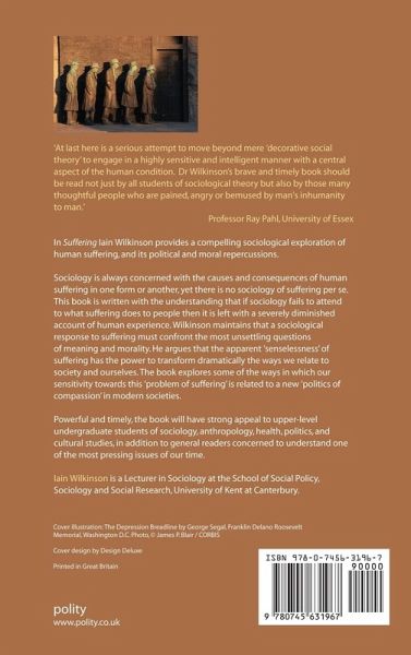 In Suffering Iain Wilkinson provides a compelling sociological exploration of human suffering, and its political and moral repercussions. Sociology is always concerned with the causes and consequences of human suffering in one form or another, yet there is no sociology of suffering per se. This book is written with the understanding that if sociology fails to attend to what suffering does to people then it is left with a severely diminished account of human experience. Wilkinson maintains that a sociological response to suffering must confront the most unsettling questions of meaning and morality. He argues that the apparent 'senselessness' of suffering has the power to transform dramatically the ways we relate to society and ourselves. The book explores some of the ways in which our sensitivity towards this 'problem of suffering' is related to a new 'politics of compassion' in modern societies. Powerful and timely, the book will have strong appeal to upper-level undergraduate students of sociology, anthropology, health, politics, and cultural studies, in addition to general readers concerned to understand one of the most pressing issues of our time.