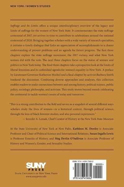 Reflects on the legacy and limits of suffrage in New York State as a way to understand present-day issues with women's social and political rights, as well proposes ideas for future progress.
