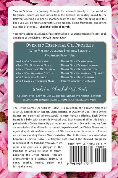 Sufi Book of Essential Oils is an encyclopedia of essential oils that promotes a spiritual approach to aromatherapy. It builds upon Islamic mysticism, known as Sufism, and modern aromatherapy, the practice of using essential oils to enhance well-being. Most contemporary aromatherapy encyclopedias include detailed profiles of an essential oil's botanical properties and physical, mental, and emotional uses. Rarely do these profiles include spiritual uses, and if they do, none are from a Sufi or Islamic perspective. This book presents the essential oil's spiritual use, or Mystical Use, inspired by Sufi teachings of the Divine Names. The Divine Names, or Al-Asma Ul-Husna (The Beautiful Names), is a collection of 99 Divine Names of Allah ¿. Each Divine Name is an Attribute that describes an Aspect, Characteristic, or Quality of God. The Divine Names are a spiritual pharmacopeia to ease human suffering. Each Divine Name is a balm with a specific Mystical Use. Each essential oil in this book is paired with a Divine Name. By pairing essential oil with Divine Name, we form an association that allows for a somatic experience of the Divine Name and a mystical application of the essential oil. The essential oil becomes a spiritual salve. Exploring the Divine Names through aromatherapy is ultimately a spiritual journey to open, soothe, inspire, guide, and fortify the heart.