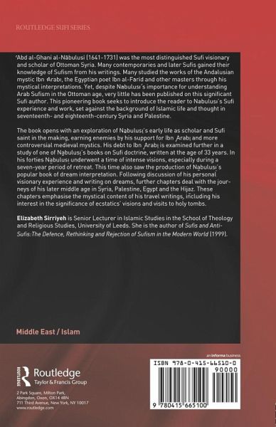 'Abd al-Ghani al-Nabulusi (1641 to1731) was the most outstanding scholarly Sufi of Ottoman Syria. He was regarded as the leading religious poet of his time and as an excellent commentator of classical Sufi texts. At the popular level, he has been read as an interpreter of symbolic dreams. Moreover, he played a crucial role in the transmission of the teachings of the Naqshabandiyya in the Ottoman Empire, and he contributed to the eighteenth-century Sufi revival via his disciples. This pioneering book analyzes important aspects of al-Nabulusi's work and places him in the historical context.