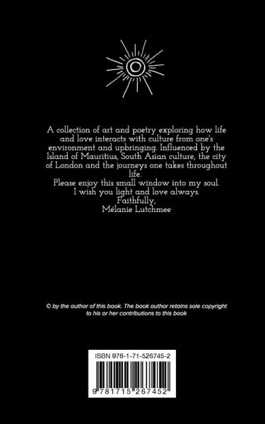 A collection of art and poetry exploring how life and love interacts with culture from one's environment and upbringing. Influenced by the Island of Mauritius, South Asian culture, the city of London and the journeys one takes throughout life. Please enjoy this small window into my soul. I wish you light and love always. Faithfully, Mélanie Lutchmee