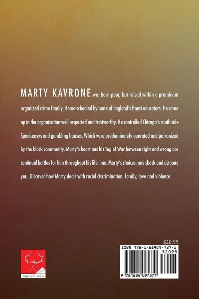 Marty Kavrone was born poor, but raised within a prominent organized crime family. Home schooled by some of England's finest educators. He came up in the organization well respected and trustworthy. He controlled Chicago's south side Speakeasys and gambling houses. Which were predominately operated and patronized by the black community. Marty's heart and his Tug of War between right and wrong are continual battles for him throughout his life time. Marty's choices may shock and astound you. Discover how Marty deals with racial discrimination, family, love and violence.