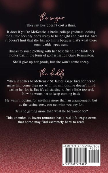 The sugar They say love doesn't cost a thing. It does if you're McKenzie, a broke college graduate looking for a little security. She's ready to be bought and paid for. It doesn't hurt that she has no limits because that's what these sugar daddy types want, right? Thanks to some plotting with her best friend, she finds her money man in the form of golf sensation Gage Remington. She'll give up her goods, but she won't come cheap. The daddy When it comes to McKenzie St. James, Gage likes for her to make him come before she goes. With his millions, he doesn't mind paying her for it. But it's all starting to feel a little too real. Now he wants her to stay. He wasn't looking for anything more than an arrangement, but as the saying goes, you get what you pay for. Or is he getting more than what he bargained for? This enemies-to-lovers romance has a real-life tragic event that some may find extremely hard to read.