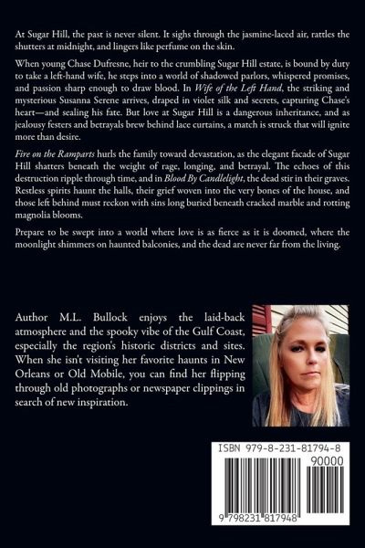 At Sugar Hill, the past is never silent. It sighs through the jasmine-laced air, rattles the shutters at midnight, and lingers like perfume on the skin. When young Chase Dufresne, heir to the crumbling Sugar Hill estate, is bound by duty to take a left-hand wife, he steps into a world of shadowed parlors, whispered promises, and passion sharp enough to draw blood. In Wife of the Left Hand, the striking and mysterious Susanna Serene arrives, draped in violet silk and secrets, capturing Chase's heart-and sealing his fate. But love at Sugar Hill is a dangerous inheritance, and as jealousy festers and betrayals brew behind lace curtains, a match is struck that will ignite more than desire. Fire on the Ramparts hurls the family toward devastation, as the elegant facade of Sugar Hill shatters beneath the weight of rage, longing, and betrayal. The echoes of this destruction ripple through time, and in Blood By Candlelight, the dead stir in their graves. Restless spirits haunt the halls, their grief woven into the very bones of the house, and those left behind must reckon with sins long buried beneath cracked marble and rotting magnolia blooms. Prepare to be swept into a world where love is as fierce as it is doomed, where the moonlight shimmers on haunted balconies, and the dead are never far from the living.