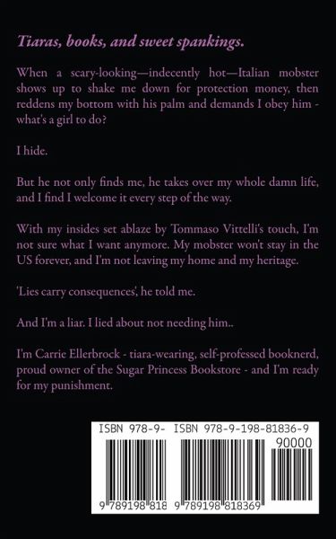 Tiaras, books, and sweet spankings. When a scary-looking-indecently hot-italian gangster shows up to threaten me for protection money, then smacks my bottom until it's pink, and calls me his principessa, demanding I obey him - what's a girl to do? I hide. But he not only finds me, he takes over my whole damn life, and I find I welcome it every step of the way. With my insides set ablaze by Tommaso Vittelli's touch, I'm not sure what I want anymore. He won't stay in the US forever, and I'm not leaving my home and my heritage. 'Tesoro', he told me, 'lies carry consequences.' And I'm a liar. I lied about not needing him. I'm Carrie Ellerbrock - tiara-wearing, self-professed booknerd, proud owner of the Sugar Princess Bookstore - and I'm ready for my punishment.