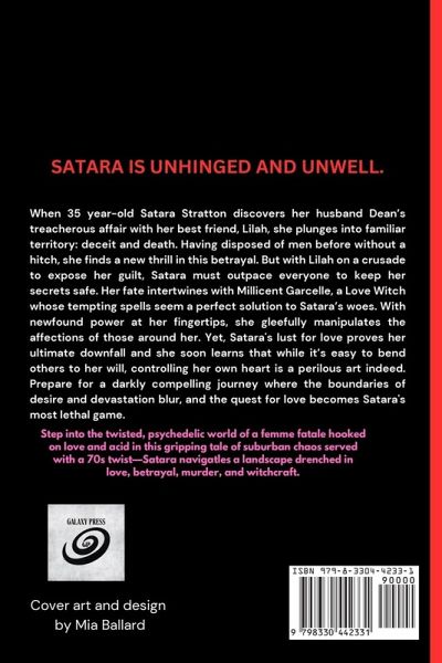 Satara is angry, and she wants revenge. Love, betrayal, murder, and witchcraft. When 35-year-old Satara Stratton discovers her husband Dean's treacherous affair with her best friend, Lilah, she plunges into familiar territory: deceit and death. Having disposed of men before without a hitch, she finds a new thrill in this betrayal. But with Lilah on a crusade to expose her guilt, Satara must outpace everyone to keep her secrets safe. Her fate intertwines with Millicent Garcelle, a love witch whose tempting spells seem a perfect solution to Satara's woes. With newfound power at her fingertips, she gleefully manipulates the affections of those around her. Yet, Satara's lust for love proves her ultimate vulnerability. Fixated on colleague Chris Stiles, she soon learns that while it's easy to bend others to her will, controlling her own heart is a perilous art indeed. Prepare for a darkly compelling journey where the boundaries of desire and devastation blur, and the quest for love becomes Satara's most lethal game. For fans of A Certain Hunger; step into the twisted, psychedelic world of Satara Stratton, a femme fatale hooked on love and acid in this gripping tale of 1970's suburban chaos where nothing is as it seems.