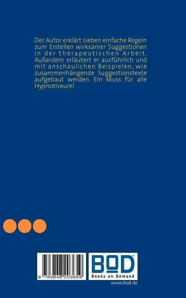 Der Autor erklärt sieben einfache Regeln zum Erstellen wirksamer Suggestionen in der therapeutischen Arbeit. Außerdem erläutert er ausführlich und mit anschaulichen Beispielen, wie zusammenhängende Suggestionstexte aufgebaut werden. Ein Muss für alle Hypnotiseure!