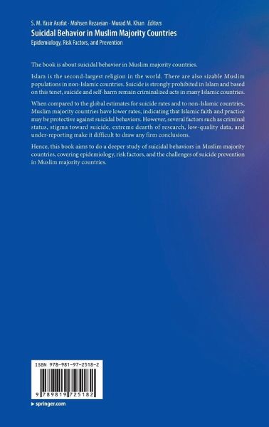 Hence, this book aims to do a deeper study of suicidal behaviors in Muslim majority countries, covering epidemiology, risk factors, and the challenges of suicide prevention in Muslim majority countries.