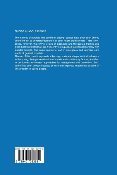 The official death rates from suicide vary considerably between countries in the world for which data are available. They range from 3 to 45 persons a year, per 100,000 of population. Historically, the higher rates of suicide are in the older age groups and in males. However, the general trend in the last twenty years has been for suicide increasing in the younger age groups (15-34) and in femah;s. It has been suggested that thi~ development is related to the phenomenon of attempted suicide, of which the rates in most industrialized countries have doubled and in some countries even tripled over the past two decades. The average rate of attempted suicide is now estimated to be around 200 per 100,000 for males and 350 for females. Almost two-thirds of these occur before the age of thirty. Although the majority of attempted suicide are not intended to be lethal, once a suicide attempt has been made, there is more likelihood of subsequent death by suicide. As many as ten percent of people who have made a previous unsuccessful attempt commit suicide at a later stage in their lives. rersons with increased likelihood to commit suicide are youngsters from disrupted families and from families with a history of suicide, drug and alcohol addiction, those who have failed at school, the unemployed and those suffering from depression.