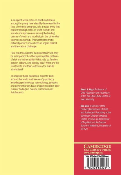 In an epoch when rates of death and illness among the young have steadily decreased in the face of medical progress, the persistently high rates of youth suicide and suicide attempts around the world remain a tragic irony and a challenge to both our clinical practice and theoretical understanding. How can these deaths be prevented? Can they be anticipated? Are there perceptible patterns of risk and vulnerability? What role do families, gender, culture, and biology play? What are the treatments for and outcomes of suicide attempters? To address these questions, experts from around the world in all areas of psychiatry, from epidemiology, neurobiology, genetics and psychotherapy, have brought together their current findings in Suicide in Children and Adolescents.