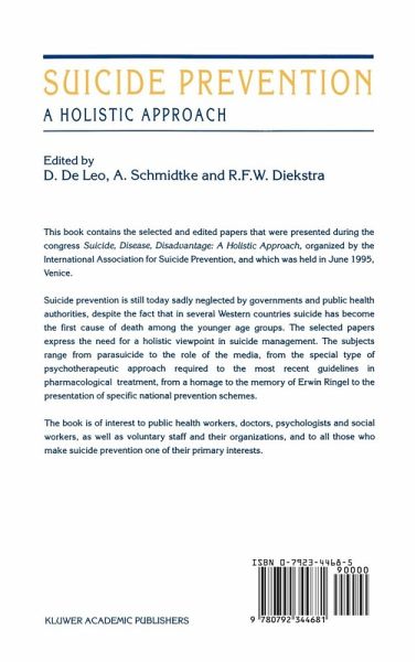 Suicide Prevention: A Holistic Approach contains the selected and edited papers that were presented during the congress Suicide, Disease, Disadvantage, A Holistic Approach, organized by the International Association for Suicide Prevention, which was held in June 1995, in Venice.