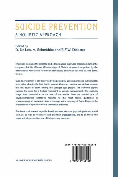Suicide Prevention: A Holistic Approach contains the selected and edited papers that were presented during the congress Suicide, Disease, Disadvantage, A Holistic Approach, organized by the International Association for Suicide Prevention, which was held in June 1995, in Venice.
