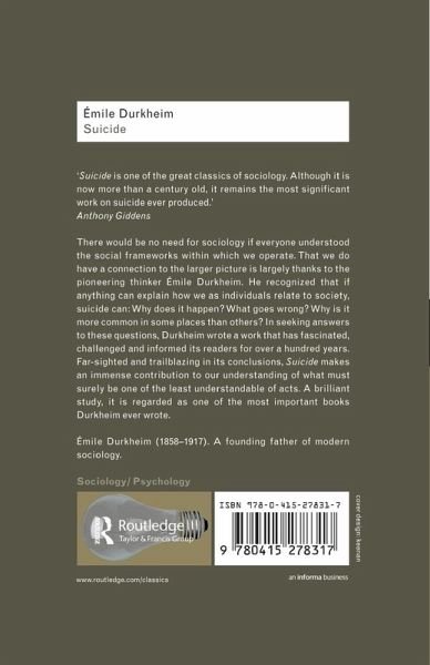 ' - Suicide is one of the great classics of sociology. Although it is now more than a century old, it remains the most significant work on suicide ever produced.'