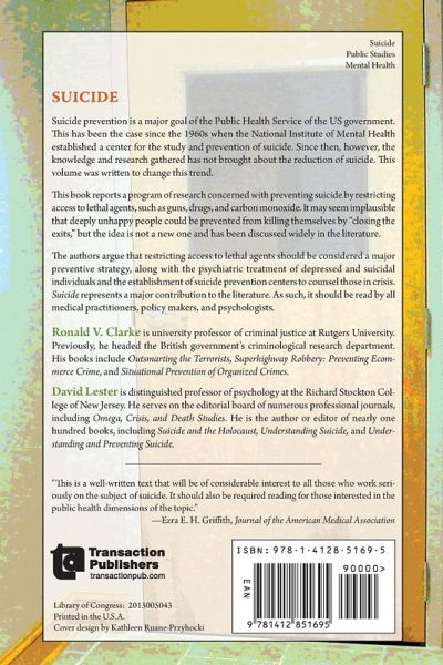 Suicide prevention is a major goal of the Public Health Service of the US government. This has been the case since the 1960s when the National Institute of Mental Health established a center for the study and prevention of suicide. Since then, however, the knowledge and research gathered has not bought about the reduction of suicide. Suicide: Closing the Exits was written to change this trend. This book reports a program of research concerned with preventing suicide by restricting access to lethal agents, such as guns, drugs, and carbon monoxide. It may seem implausible that deeply unhappy people could be prevented from killing themselves by "closing the exits," but the idea is not a new one and has been discussed widely in the literature. The authors argue that restricting access to lethal agents should be considered a major preventive strategy, along with the psychiatric treatment of depressed and suicidal individuals and the establishment of suicide prevention centers to counsel those in crisis. Suicide represents a major contribution to the literature. As such, it should be read by all medical practitioners, policy makers, and psychologists.