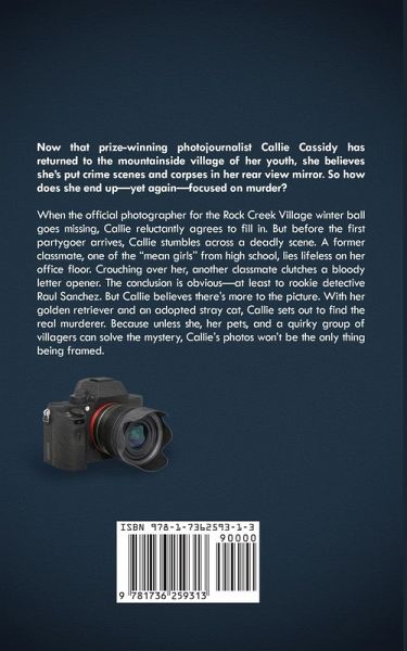 Now that prize-winning photojournalist Callie Cassidy has returned to the mountainside village of her youth, she believes she's put crime scenes and corpses in her rearview mirror. So why does she end up-once again-focusing her lens on murder? Callie Cassidy is no stranger to dead bodies. Two decades as a photojournalist on a big-city newspaper landed her face to face with so many of them that her colleagues dubbed her Queen of the Dead. Now, Callie believes her days of hanging out with cadavers are behind her. With her lovable golden retriever Woody in tow, she has returned in disgrace to Rock Creek Village, Colorado, where she licks her wounds in a cabin on her parents' Rocky Mountain ski resort property. But when her mother persuades her to abandon her fetal position beneath the quilts and take a photographer gig at the Snowflake Swirl winter ball, Callie's foray back into the real world lands her smack in the middle of town drama. Before the first partygoer arrives, Callie stumbles across a deadly scene. A former classmate, one of the "mean girls" from high school, lies lifeless on her office floor. Another woman from Callie's past crouches above the body, holding a bloody letter opener. The conclusion is obvious-at least to rookie detective Raul Sanchez. But Callie believes there's more to the picture. With the help of an adopted stray cat named Carl, whose investigative skills may rival her own, Callie sets out to find the real murderer. Because unless she, her pets, and a quirky group of villagers can solve the mystery, Callie's photos won't be the only thing being framed. SILVER FALCHION 2022 WINNER FOR BEST COZY MYSTERY AND 2ND RUNNER UP BEST BOOK! FIRST PLACE IN THE CHANTICLEER INTERNATIONAL BOOK AWARDS MURDER AND MAYHEM DIVISION!